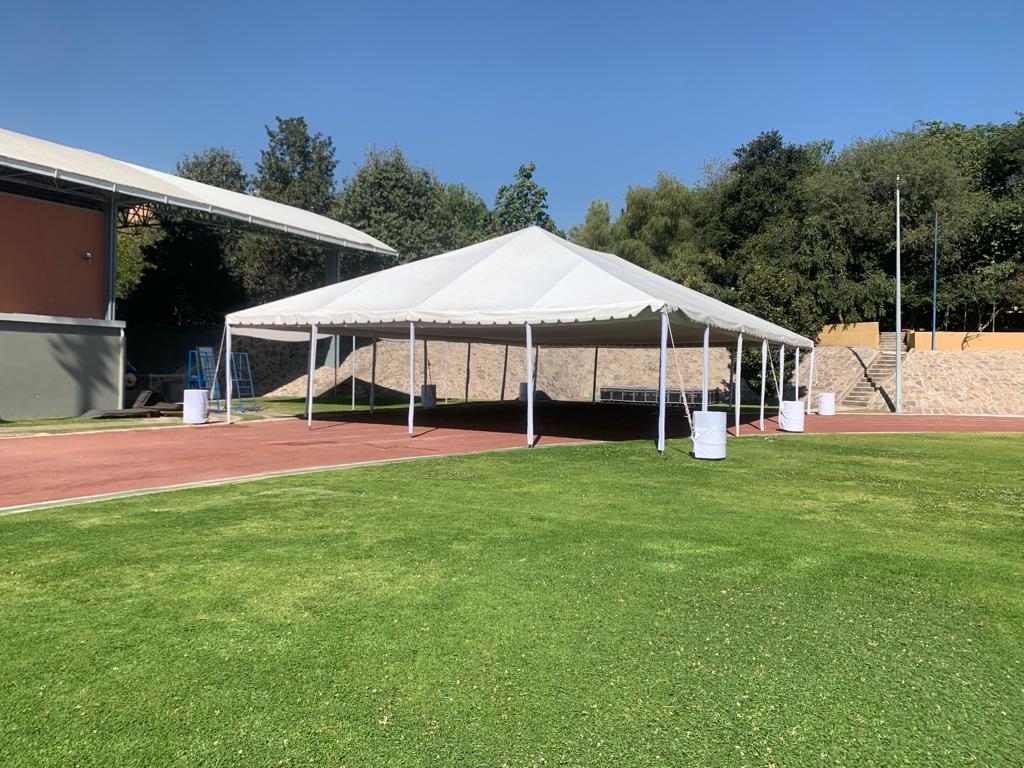 – ESTRUCTURA DE FIERRO Y ALUMINIO – LONA BLACK OUT BLANCA – CIELO TIPO ARABE O PLANO – CANDIL O PLAFON CON FOCO AHORRADOR – CUBRE PATAS DE TELA – CORTINAS DE TELA MEDIDA 6 MTS.